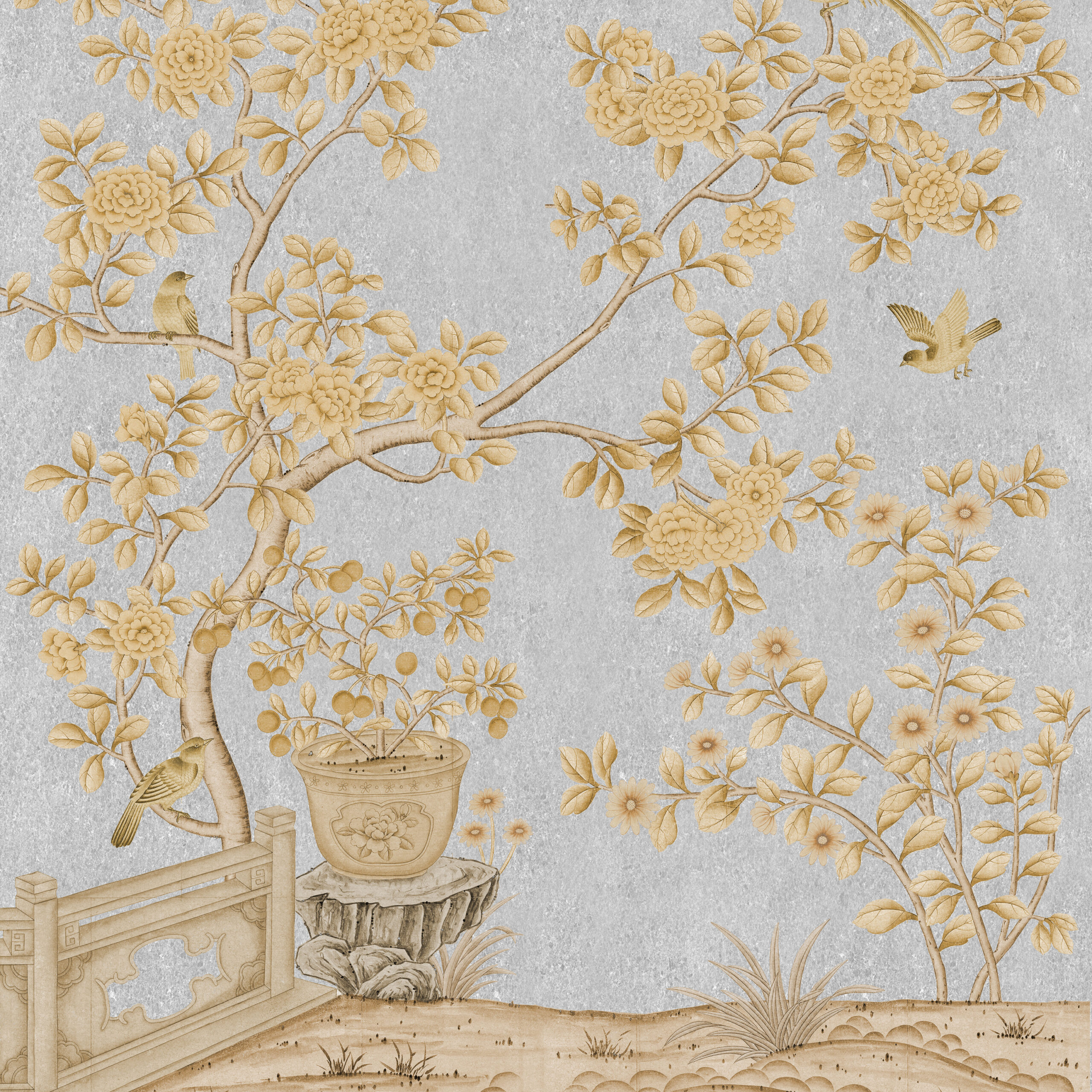 Tags: Chinoiseries, Floral/Botanical, Gilded Metallic Silver Matt, Hand Painted, Mural, Silver, Traditional