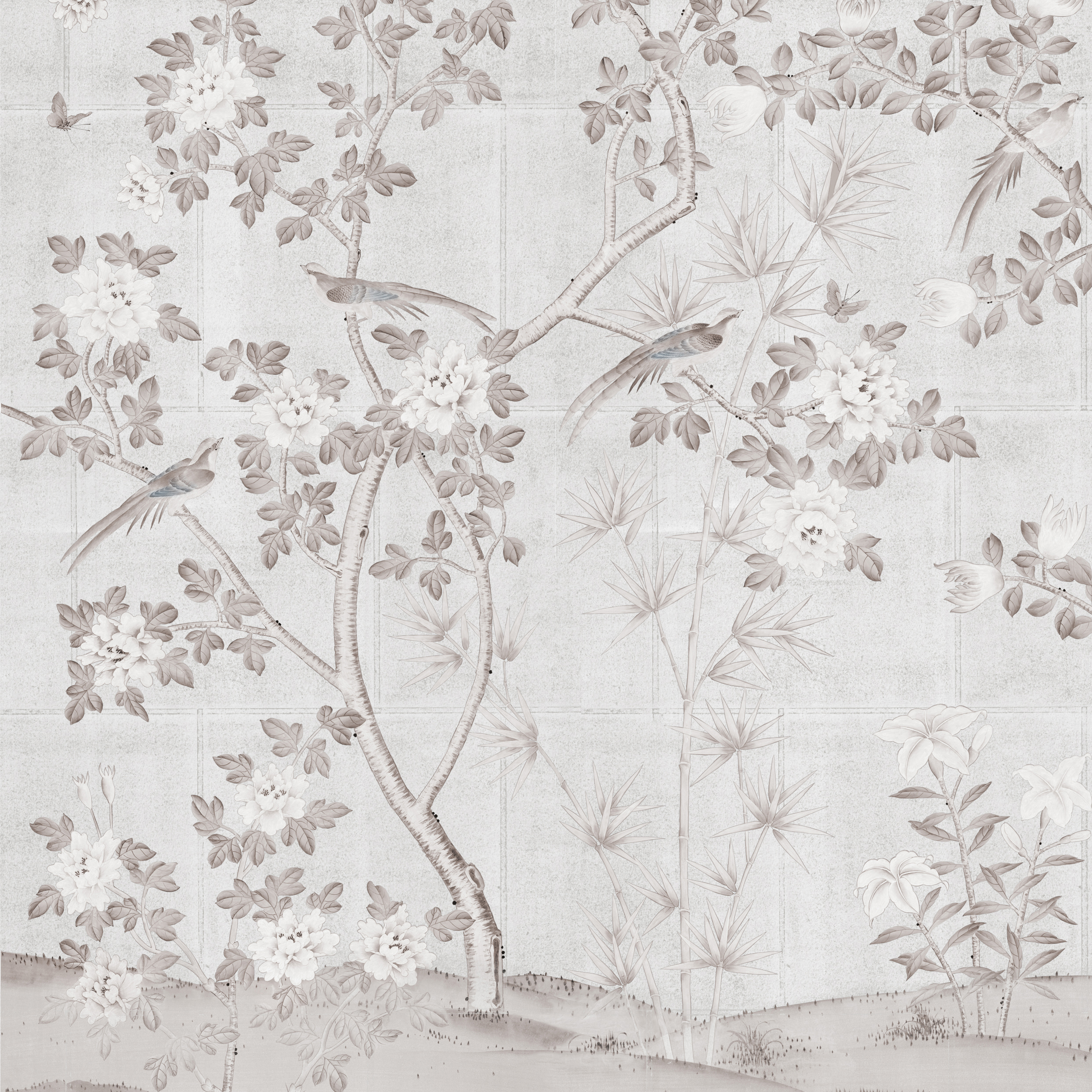 Our Baron’s Court garden scene provides a variety of trees and flowers delicately hand painted to create a tranquil, peaceful environment. Birds, flowers and butterflies, popular motifs in the decorative art of chinoiserie, feature throughout this scene.
