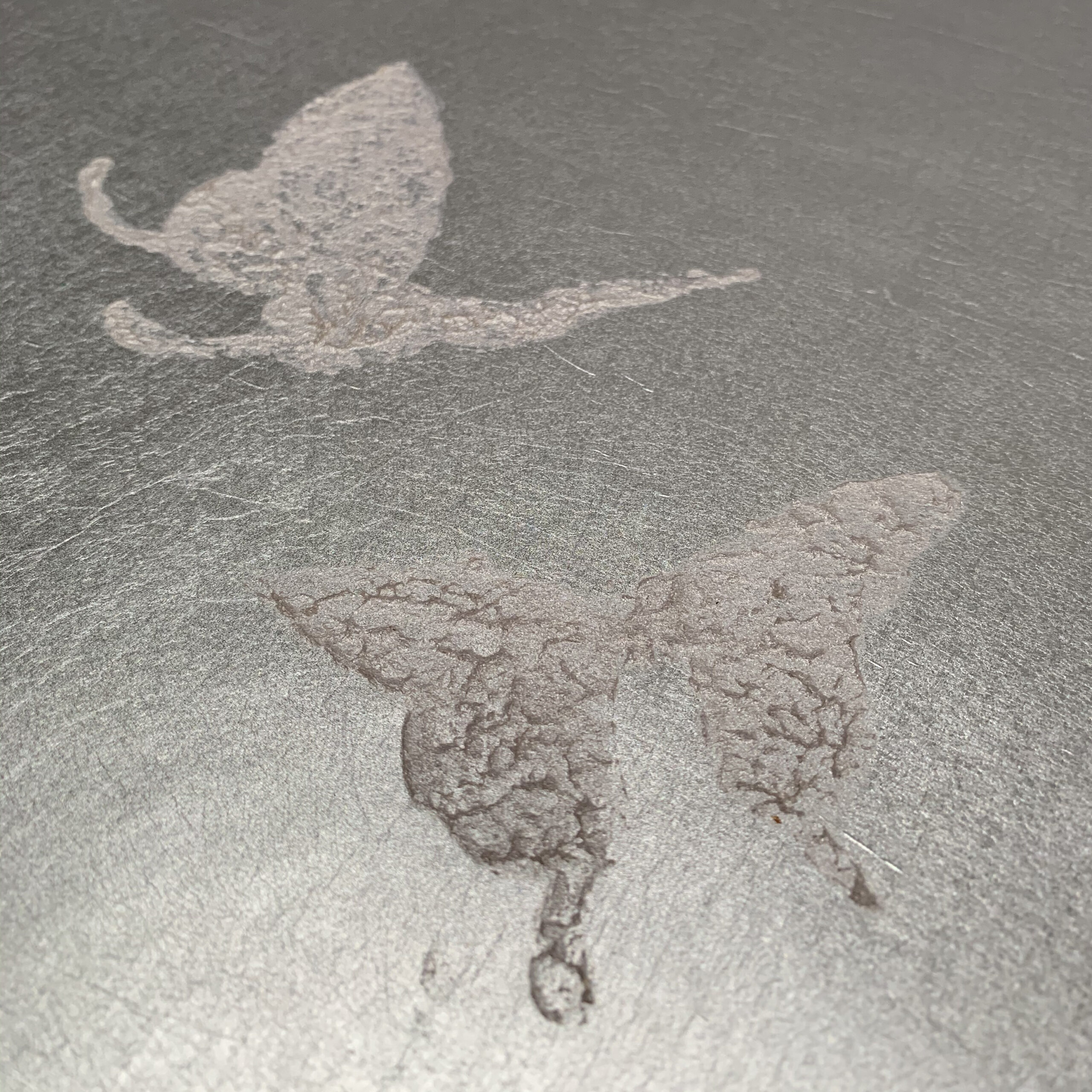 The beautiful butterfly is created by applying gold metallic paste by hand with a palette knife to either grasscloth or hand gilded metallic. The gold butterfly applied to a metallic gold ground creates an intense luxurious multidimensional look. Applied to grasscloth contrast is created between the natural matt grasscloth ground and the delightful gold butterfly. Our pearlised butterflies applied to hand gilded metallic grounds create a more subtle effect that can be intensified with the addition of colour to the metallic wall covering. Whichever butterfly or ground you choose the design will add impact to any scheme.