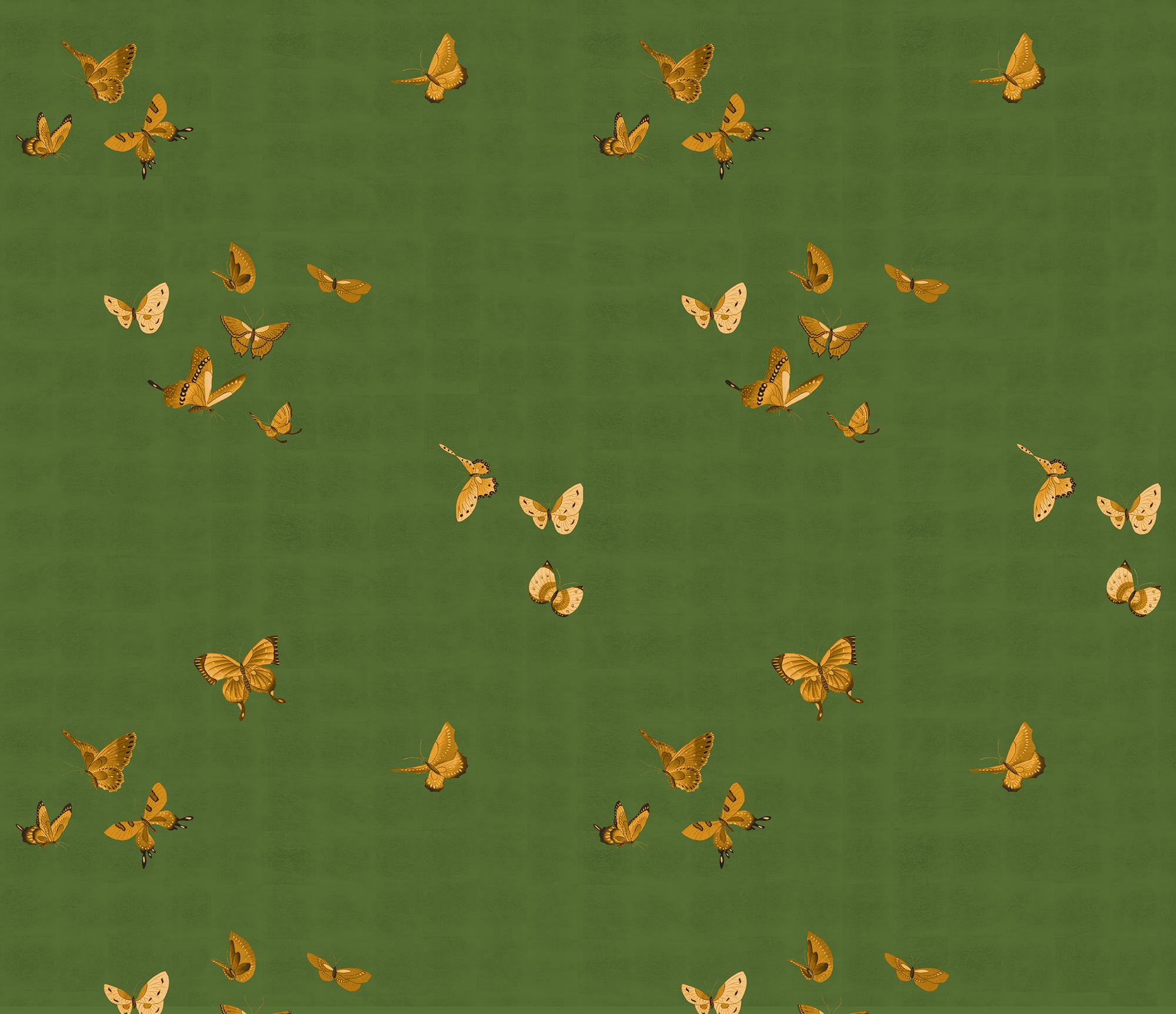 A symbol of grace, love and transformation in Eastern tradition, the butterfly here is painted flying freely. The mood and look of this intricate design can also be transformed by applying different colours to the background and to the pattern. This pretty imagery prints beautifully on silk, paper, gilded metallic and natural grasscloth.