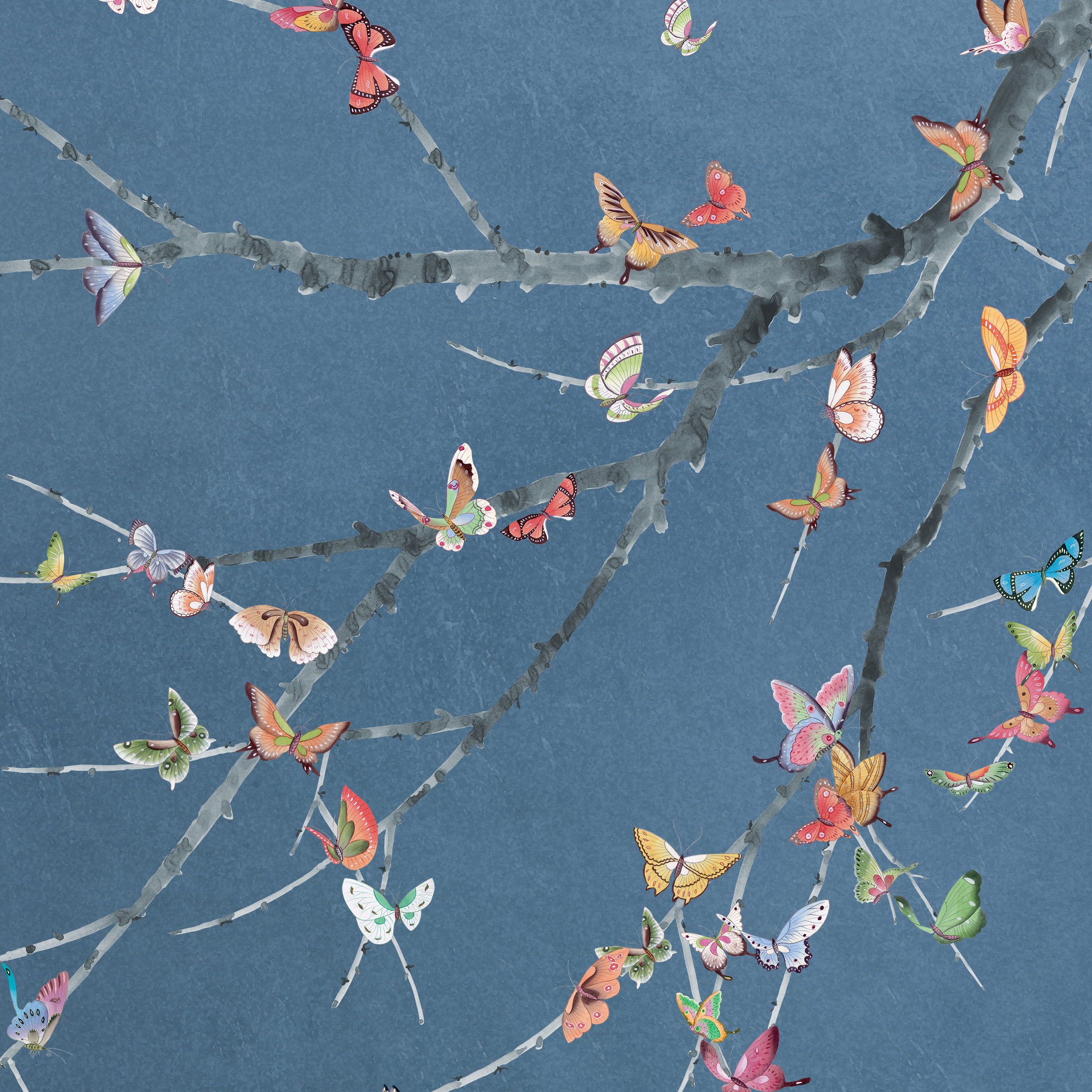 Tags: Blue, Chinoiseries, Floral/Botanical, Gilded Metallic Silver, Hand Painted, Modern, Mural