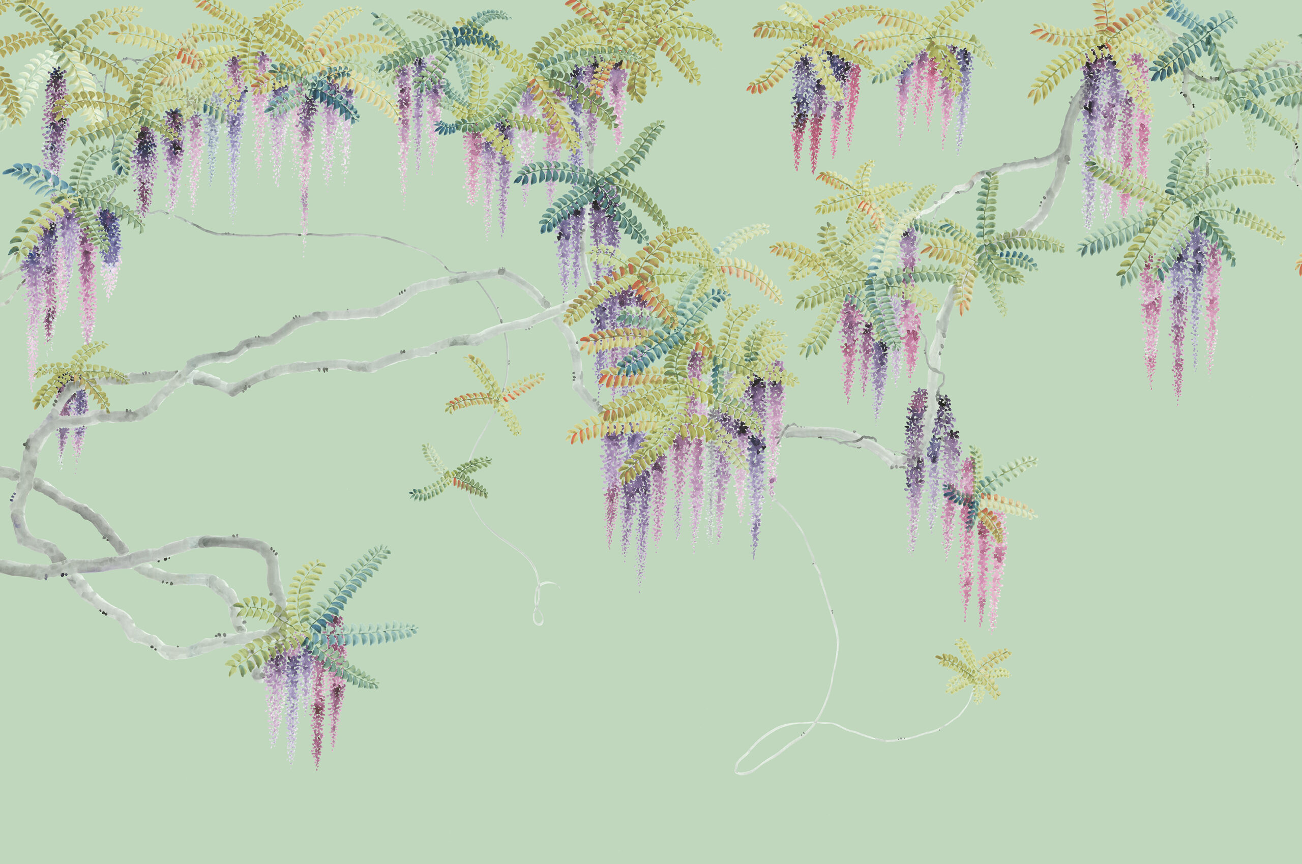 Giant Arundinaria grasses and bamboo grow gracefully if somewhat chaotically in this beautiful scene. The delicate foliage tumbles down from above. Well balanced the composition is full of gentle life, the organic canes symbolising the virtues of flexibility and strength so we may find balance and inner peace. Designed to fit both contemporary and traditional settings. Beautiful in natural, rich and monochromatic colour schemes.