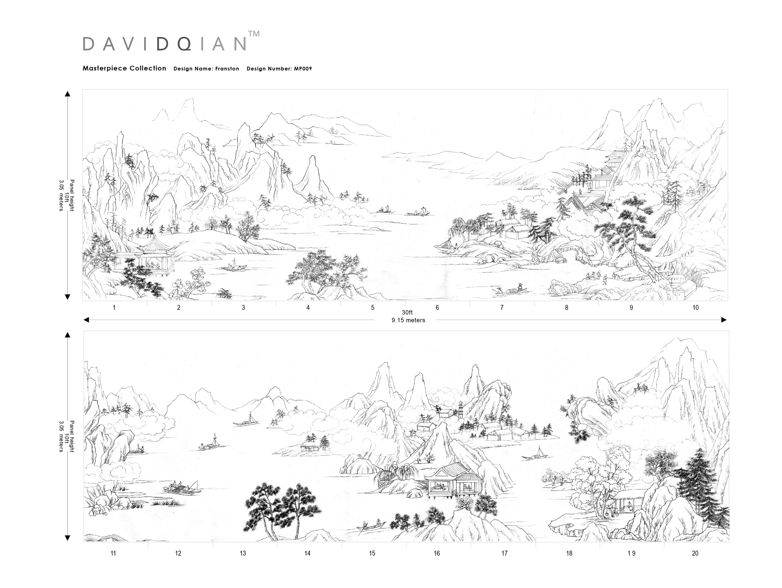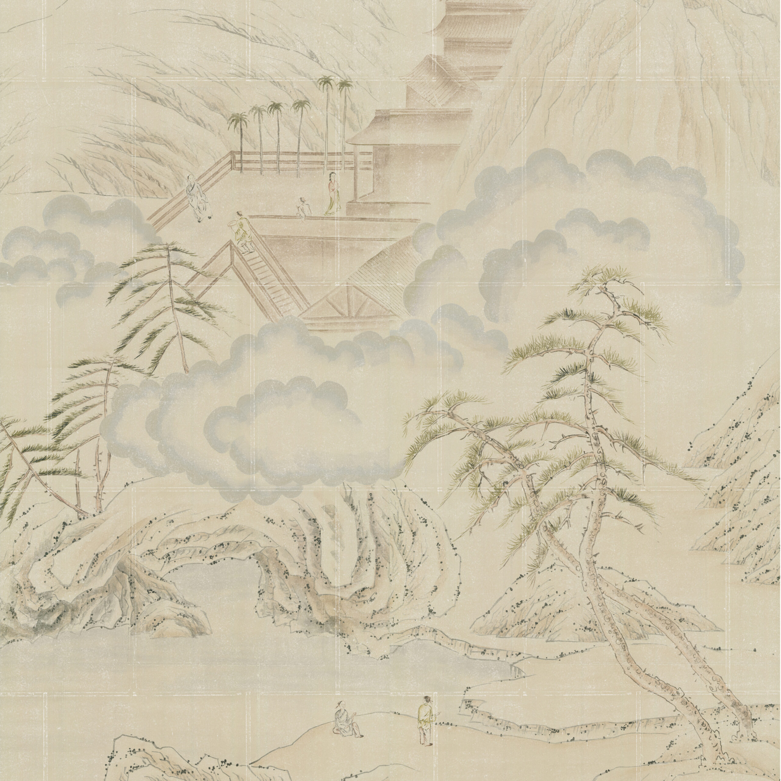 Our exquisitely hand painted landscape of mountains, trees, lakes and traditional Chinese temples and pagodas offers a perfect scenic landscape in the art of chinoiserie.