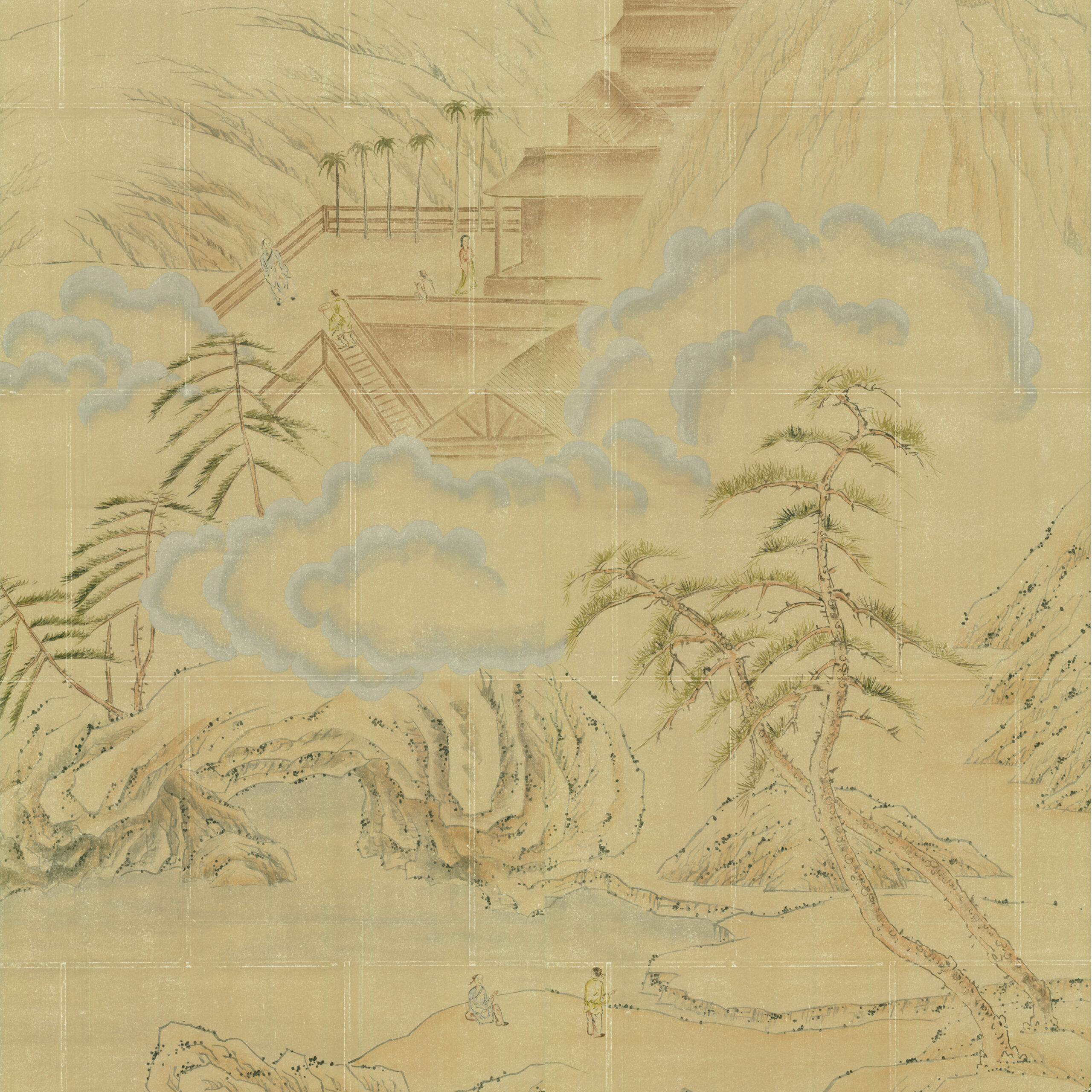 Our exquisitely hand painted landscape of mountains, trees, lakes and traditional Chinese temples and pagodas offers a perfect scenic landscape in the art of chinoiserie.