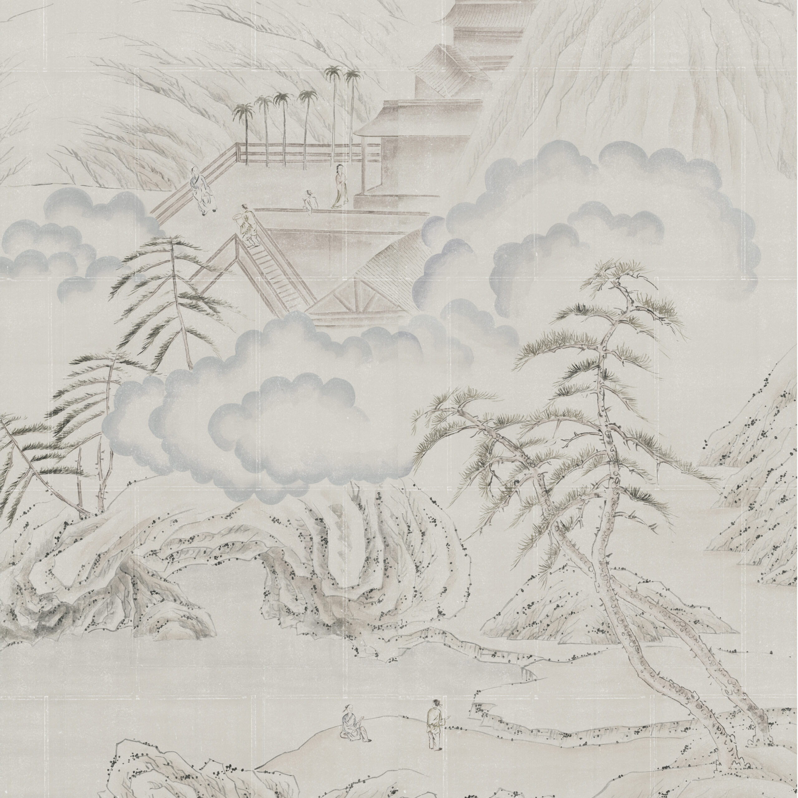 Our exquisitely hand painted landscape of mountains, trees, lakes and traditional Chinese temples and pagodas offers a perfect scenic landscape in the art of chinoiserie.
