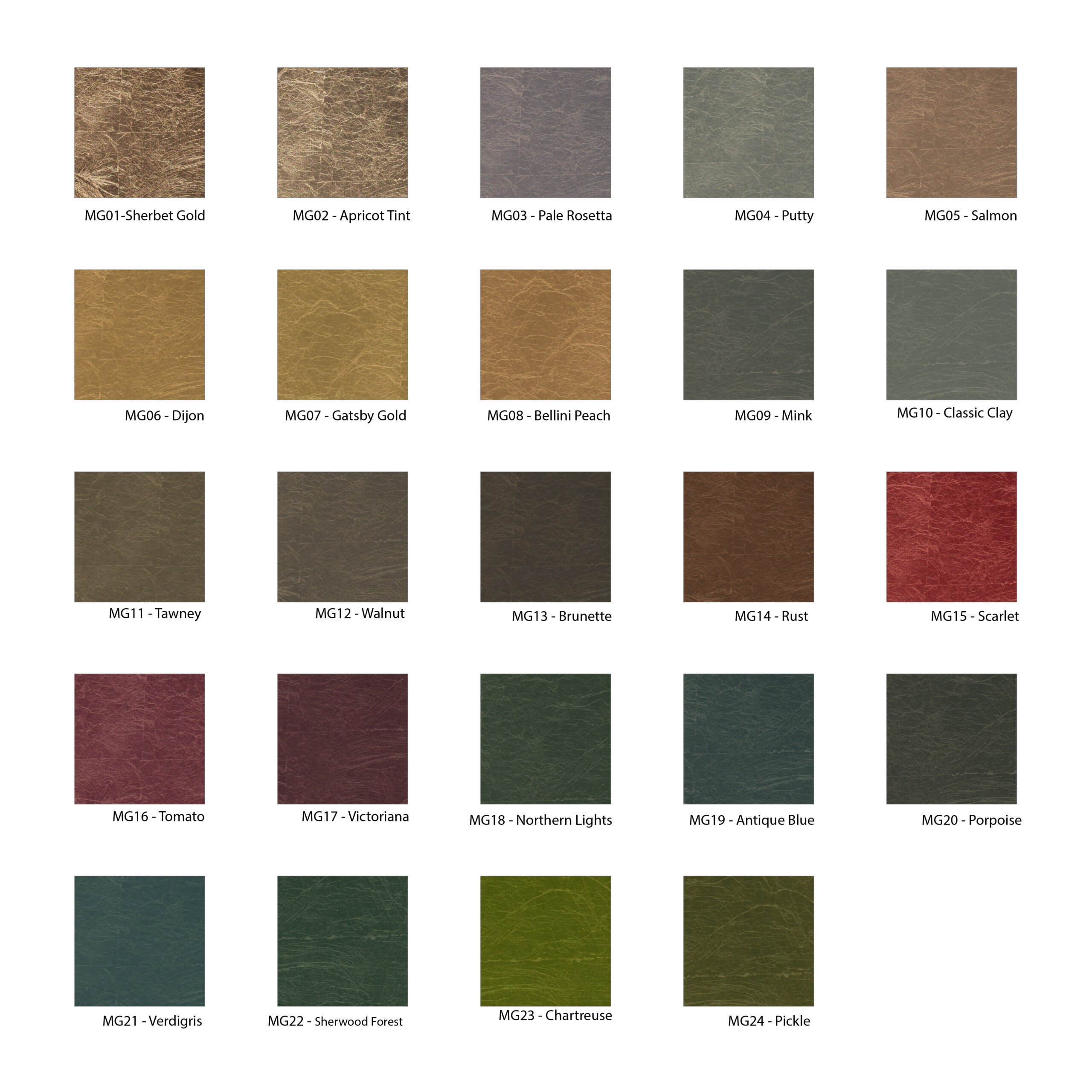 | COLOUR | MG01 Sherbet Gold, MG02 Apricot Tint, MG03 Pale Rosetta, MG04 Putty, MG05 Salmon, MG06 Dijon, MG07 Gatsby Gold, MG08 Bellini Peach, MG09 Mink, MG10 Classic Clay, MG11 Tawney, MG12 Walnut, MG13 Brunette, MG14 Rust, MG15 Scarlet, MG16 Tomato, MG17 Victoriana, MG18 Northern Lights, MG19 Antique Blue, MG20 Porpoise, MG21 Verdigris, MG22 Sherwood Forest, MG23 Chartreuse, MG24 Pickle, N/A |