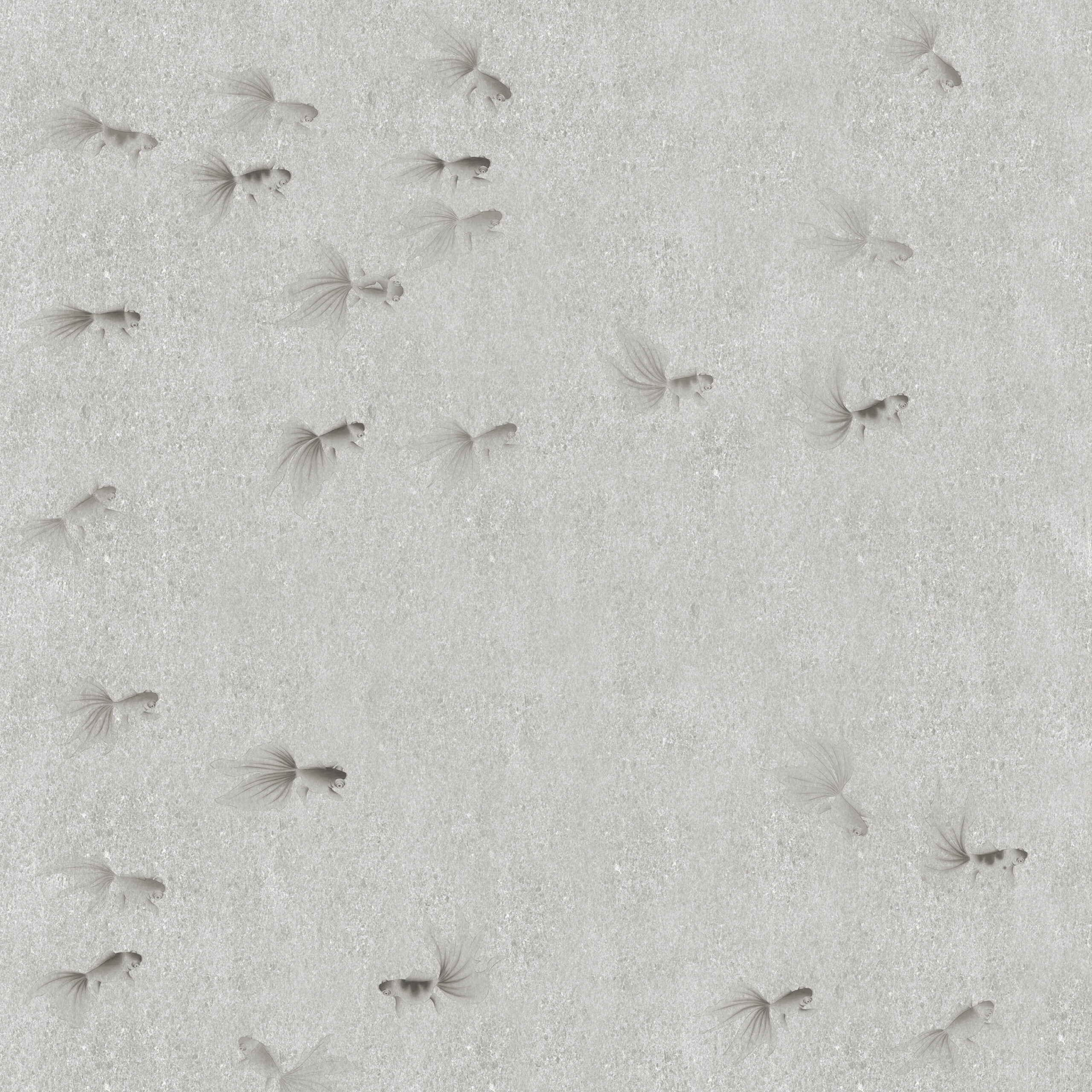 Contemporary scene depicting fantail goldfish swimming freely in open water, symbolising good fortune, success, and prosperity in Chinese culture. Our beautiful goldfish wall covering creates a unique statement as a mural.