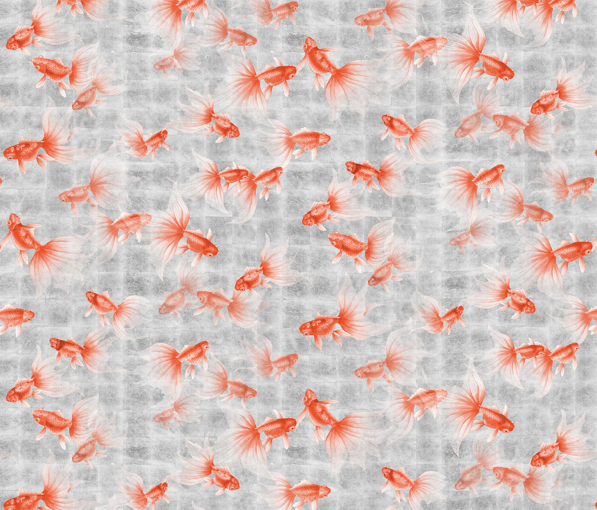 Stunning contemporary pattern with large scale fantail goldfish swimming freely. Symbolising good fortune, success and prosperity the goldfish are an important part of Chinese culture. The design works well as a wall covering in a variety of colour combinations, and also creates a unique statement as a mural.