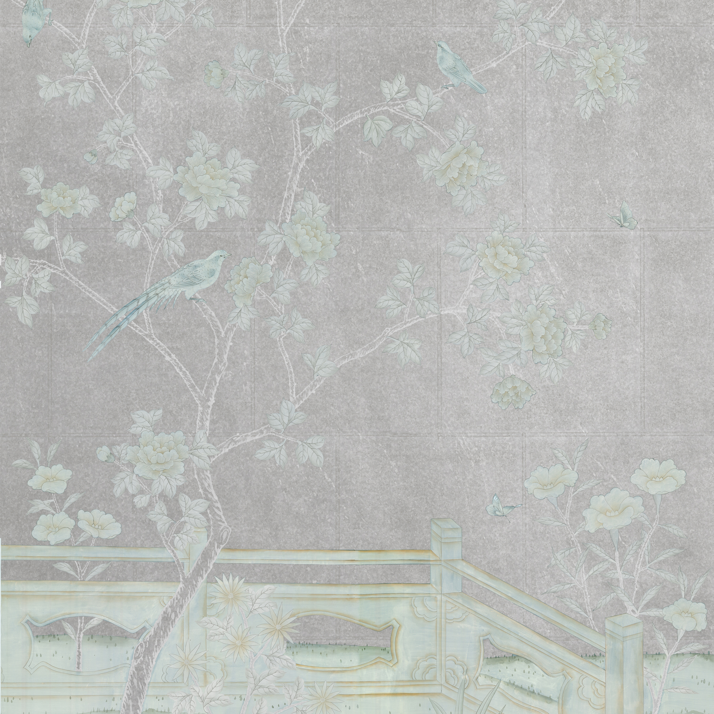 Tags: Chinoiseries, Floral/Botanical, Gilded Metallic Silver, Hand Painted, Mural, Pieced and Glued Metallic, Traditional