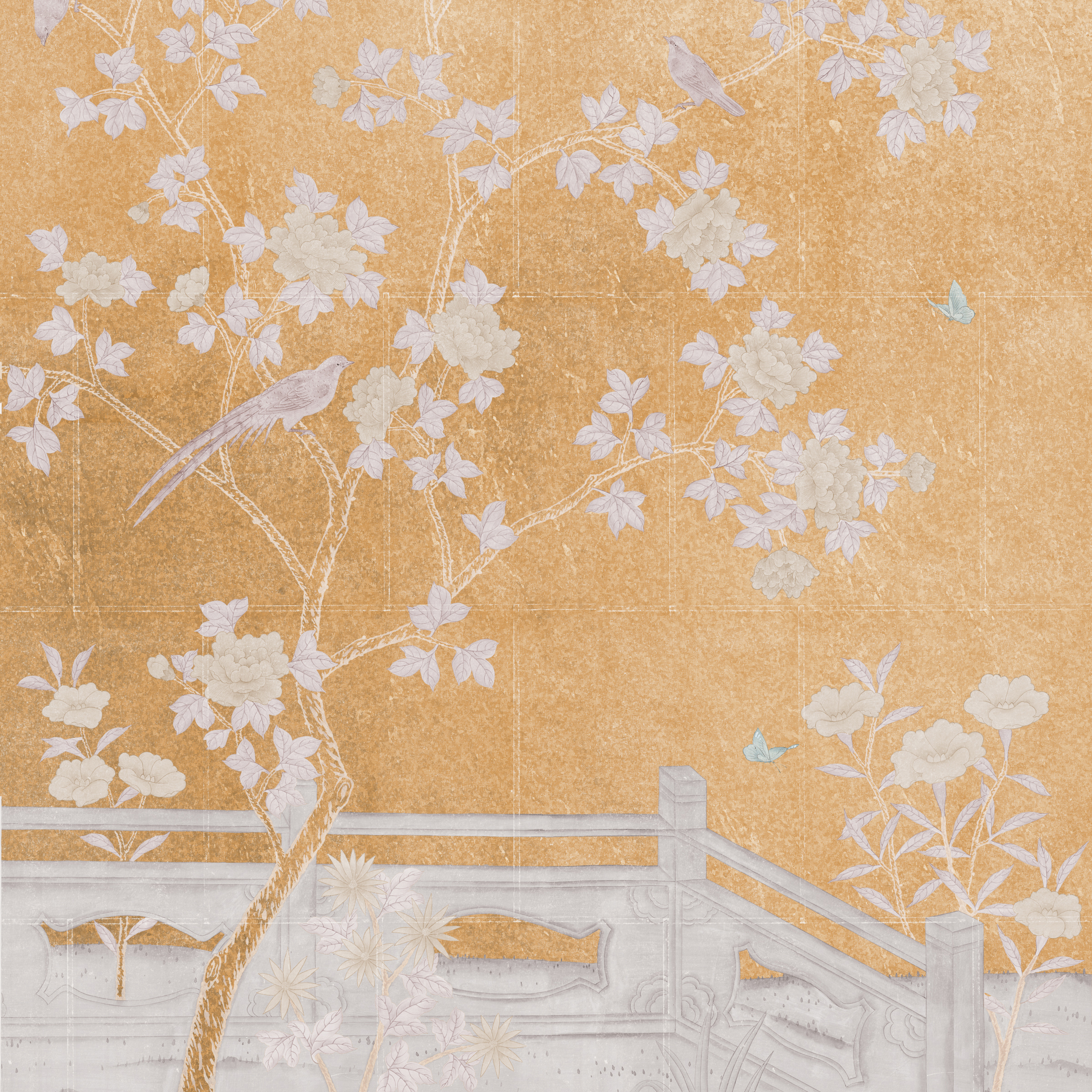Tags: Chinoiseries, Floral/Botanical, Gold, Hand Painted, Mural, Pieced and Glued Metallic, Traditional