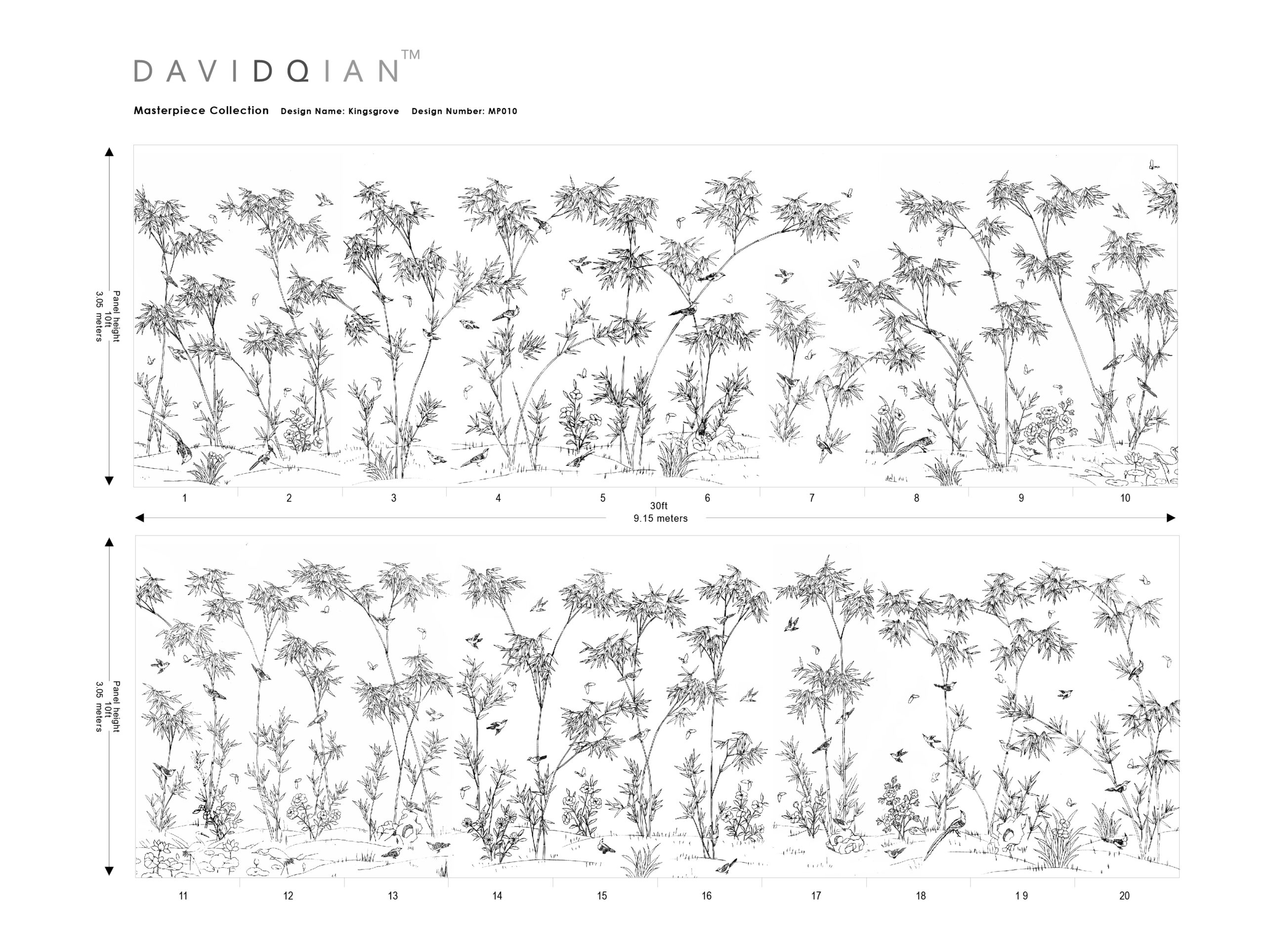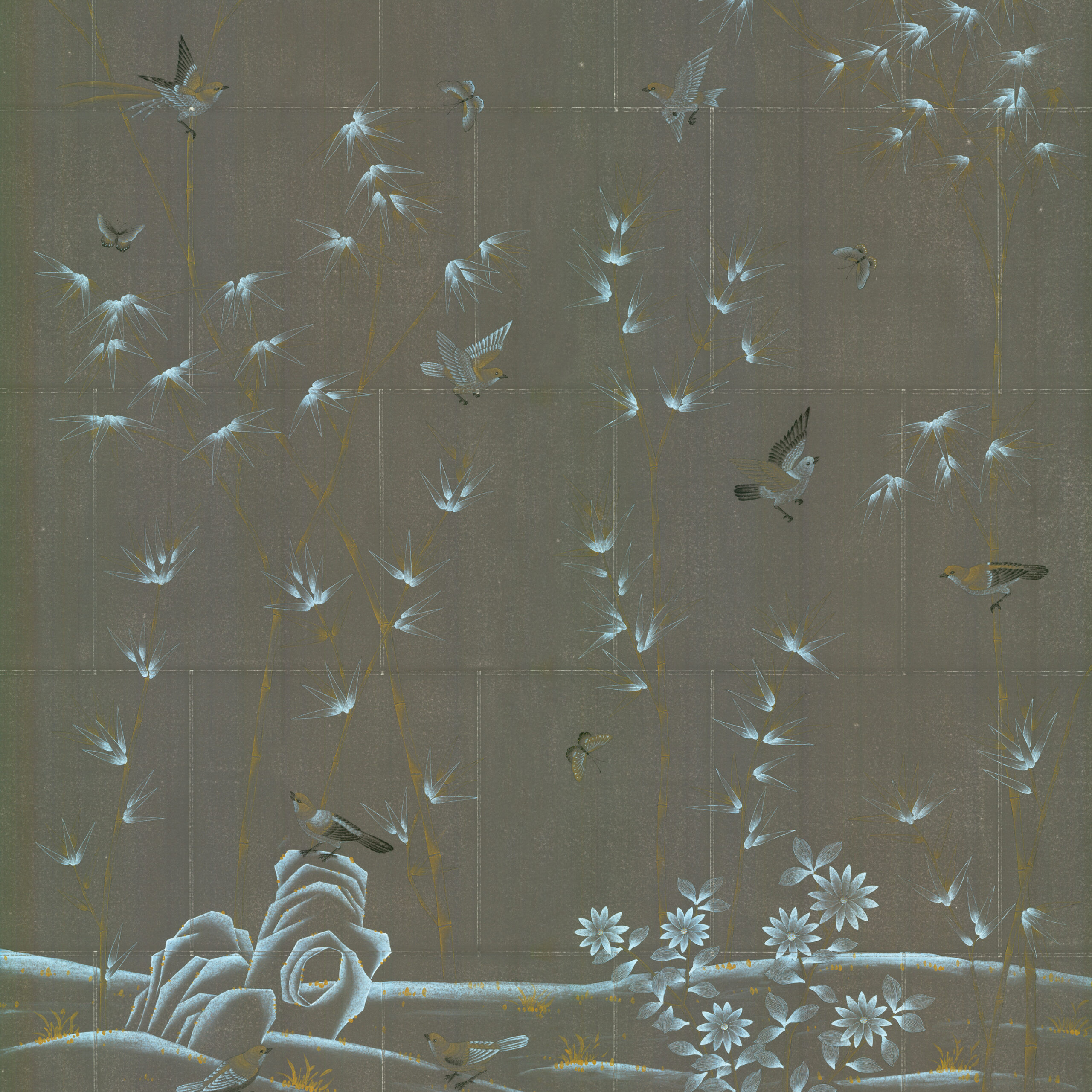 Bamboo is a symbol of oriental beauty, and a favourite subject of Chinese painters of past dynasties. In our hand painted wallpaper Kingsgrove, the bamboo forest stands tall and elegantly supports exquisitely painted birds and butterflies.