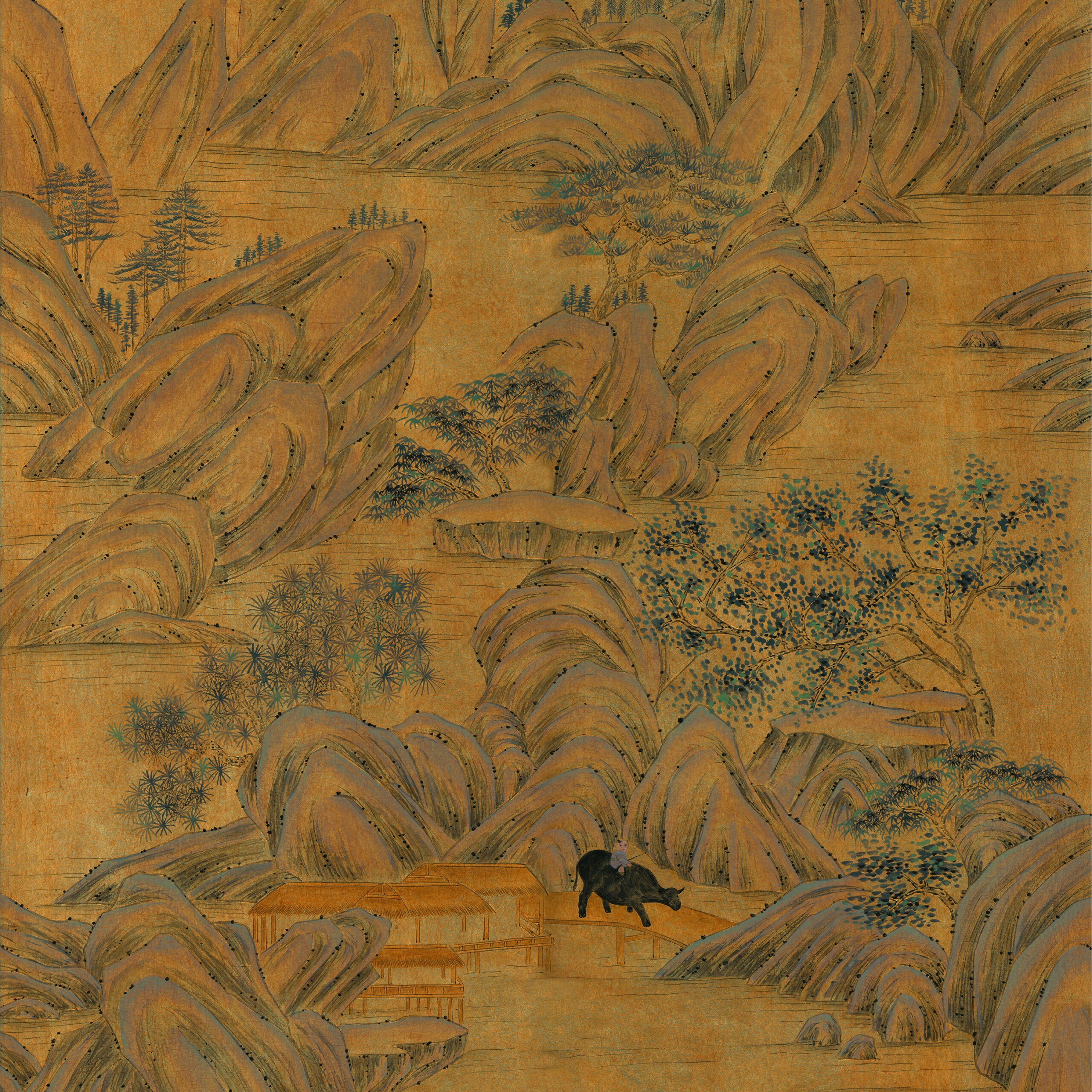 Tags: Chinoiseries, Gilded Metallic Gold, Gold, Hand Painted, Landscape, Mural, Traditional