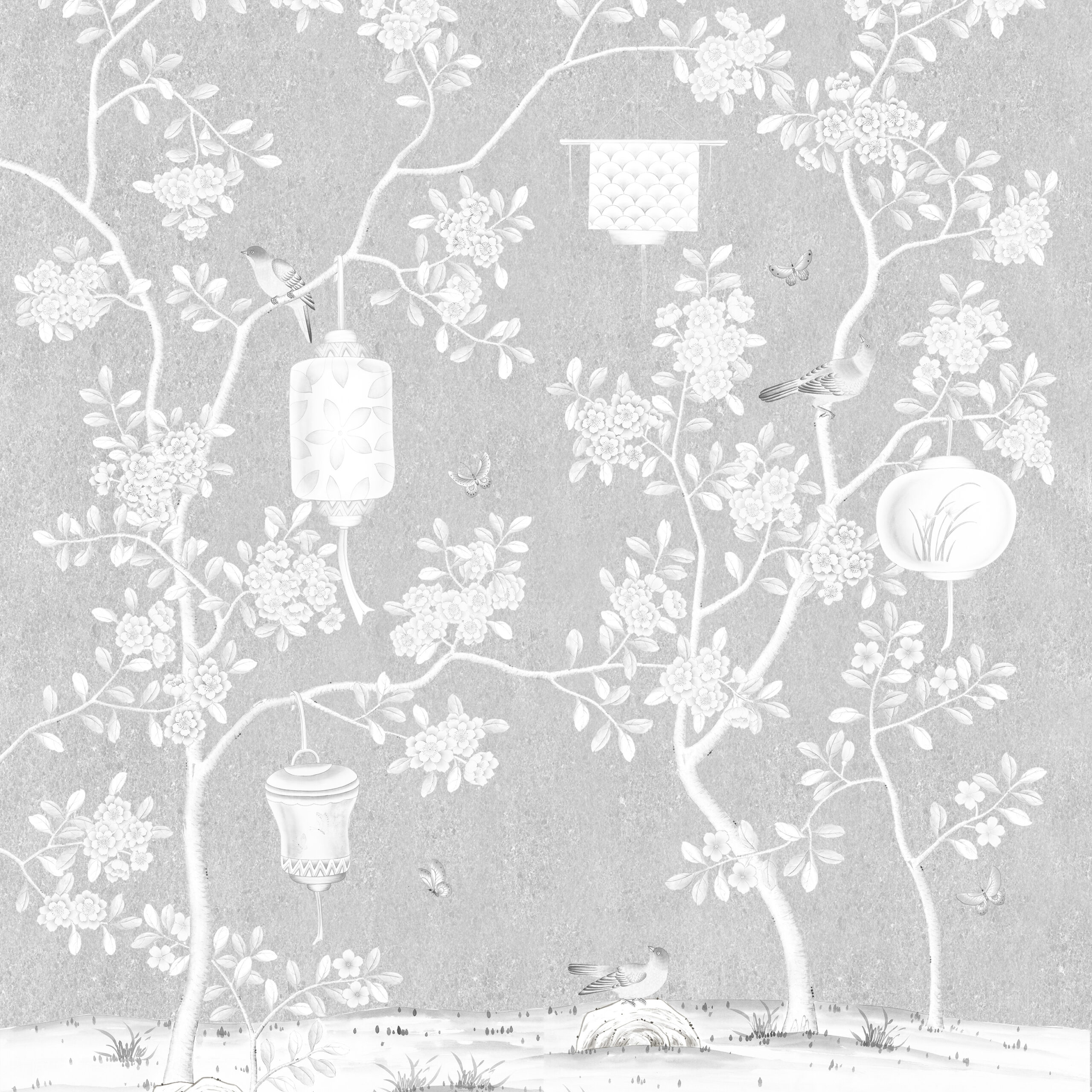 Tags: Chinoiseries, Floral/Botanical, Gilded Metallic Silver, Hand Painted, Mural, Silver, Traditional