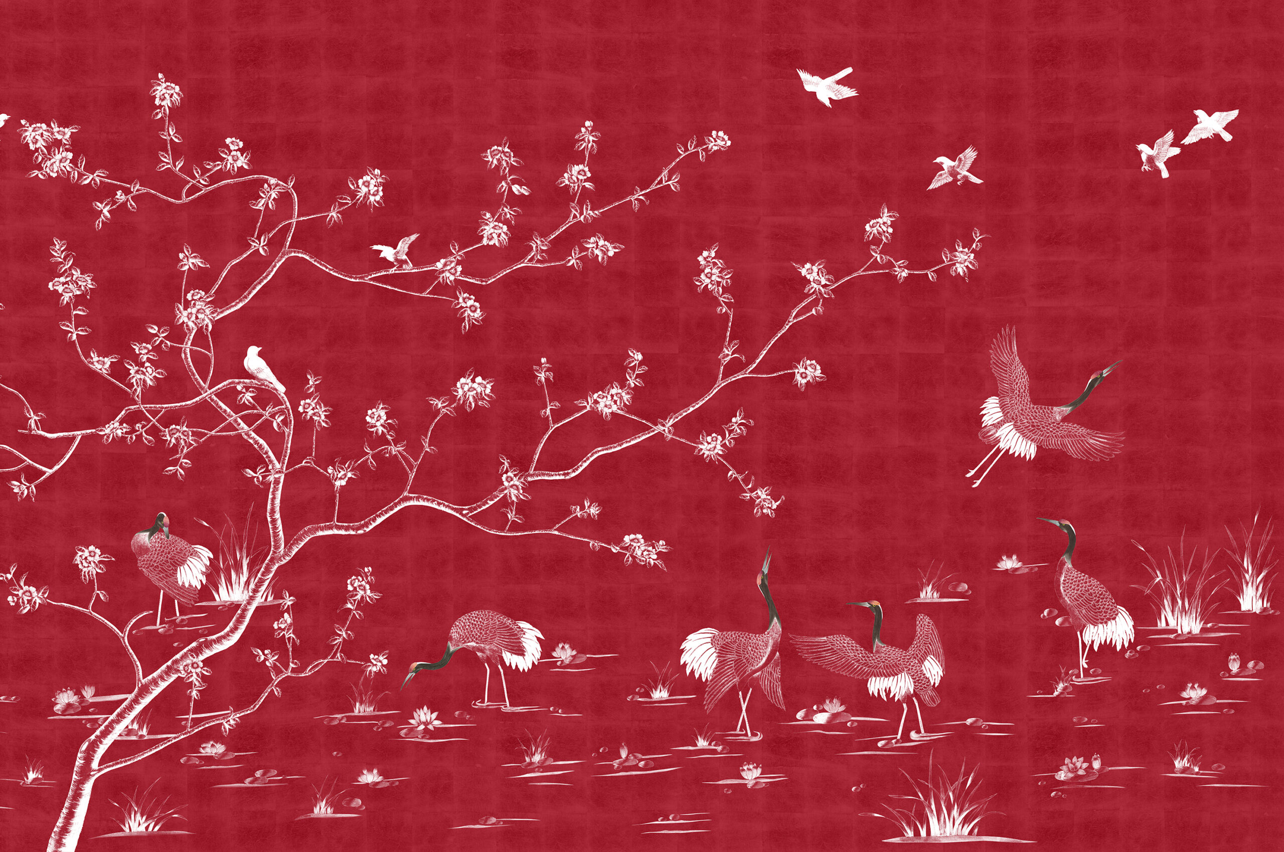 Tags: Chinoiseries, Digital Printing, Floral/Botanical, Gilded Metallic Silver, Mural, Red, Traditional