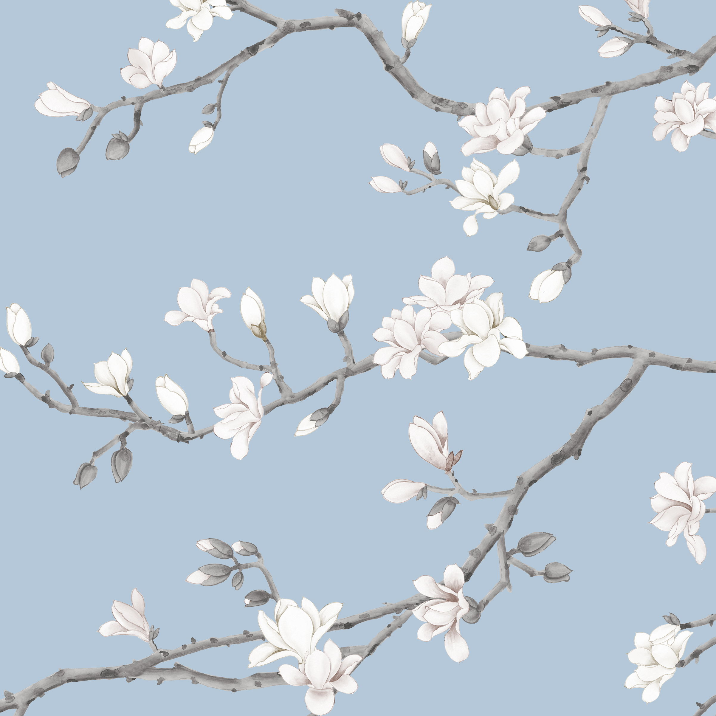 The magnolia tree is symbolic of purity and nobility in Chinese culture, and was known for its healing powers in Traditional Chinese Medicine. Our scenic wallpaper depicts magnolia trees in bloom with petals of multiple shades falling gently between the branches of the two trees.