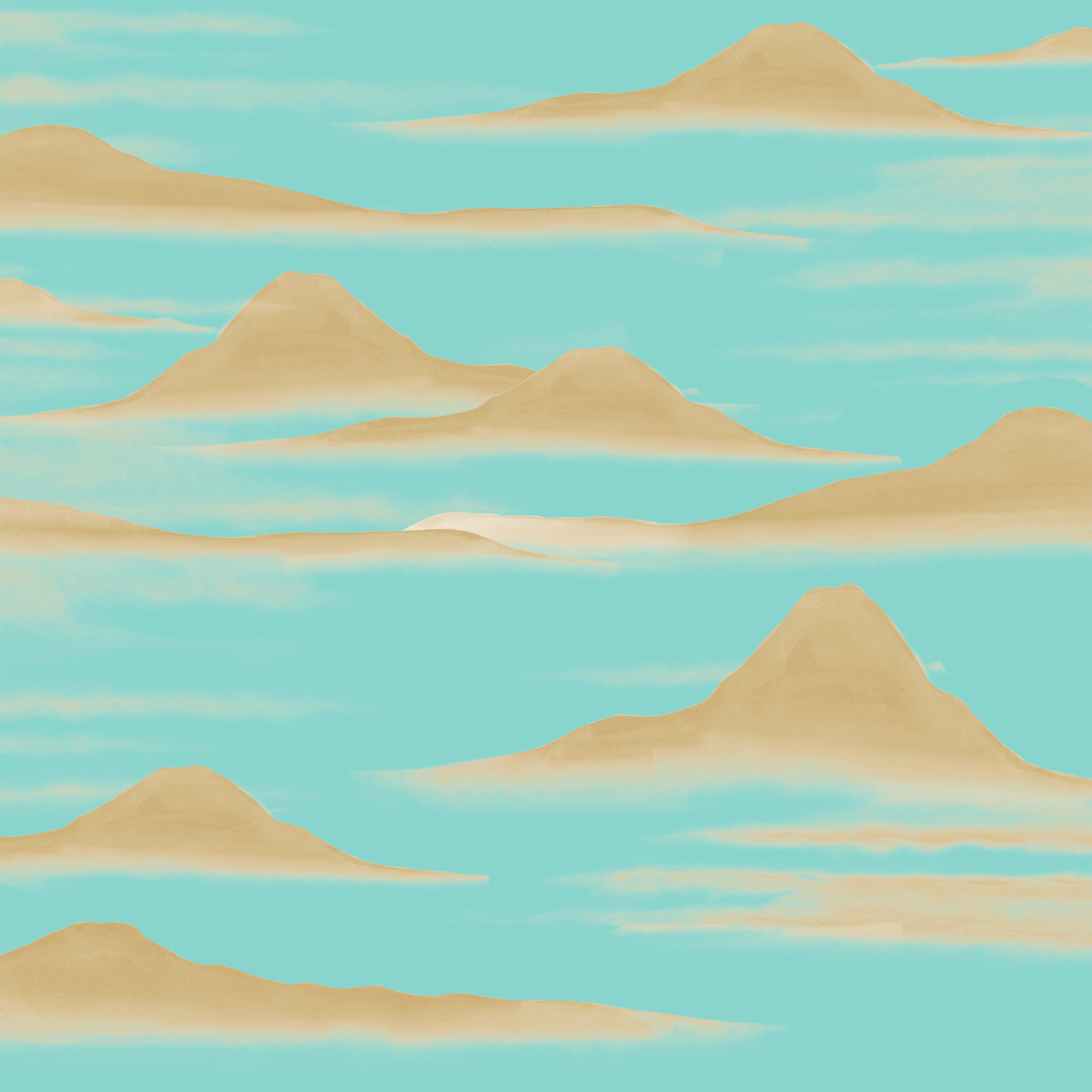 Contemporary simplicity is evident in this ethereal scenic wallpaper illustrating mountains emerging from the mist. Since ancient times, mountains are considered to represent nature’s vital energy in Chinese culture.