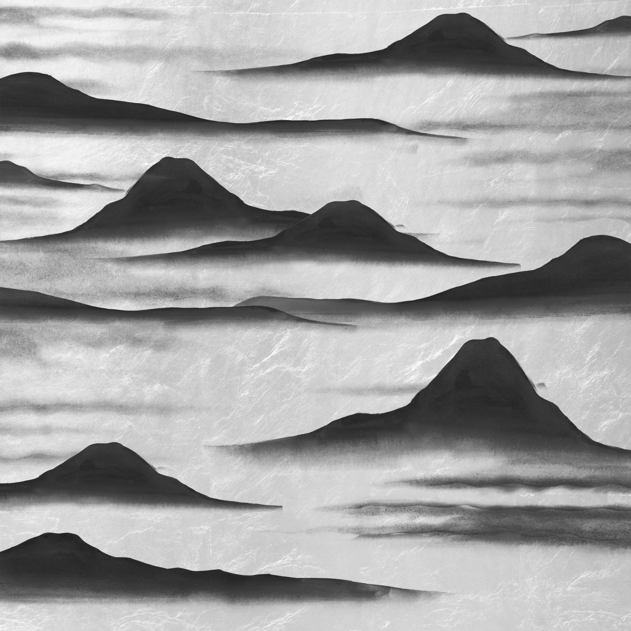 Contemporary simplicity is evident in this ethereal scenic wallpaper illustrating mountains emerging from the mist. Since ancient times, mountains are considered to represent nature’s vital energy in Chinese culture.