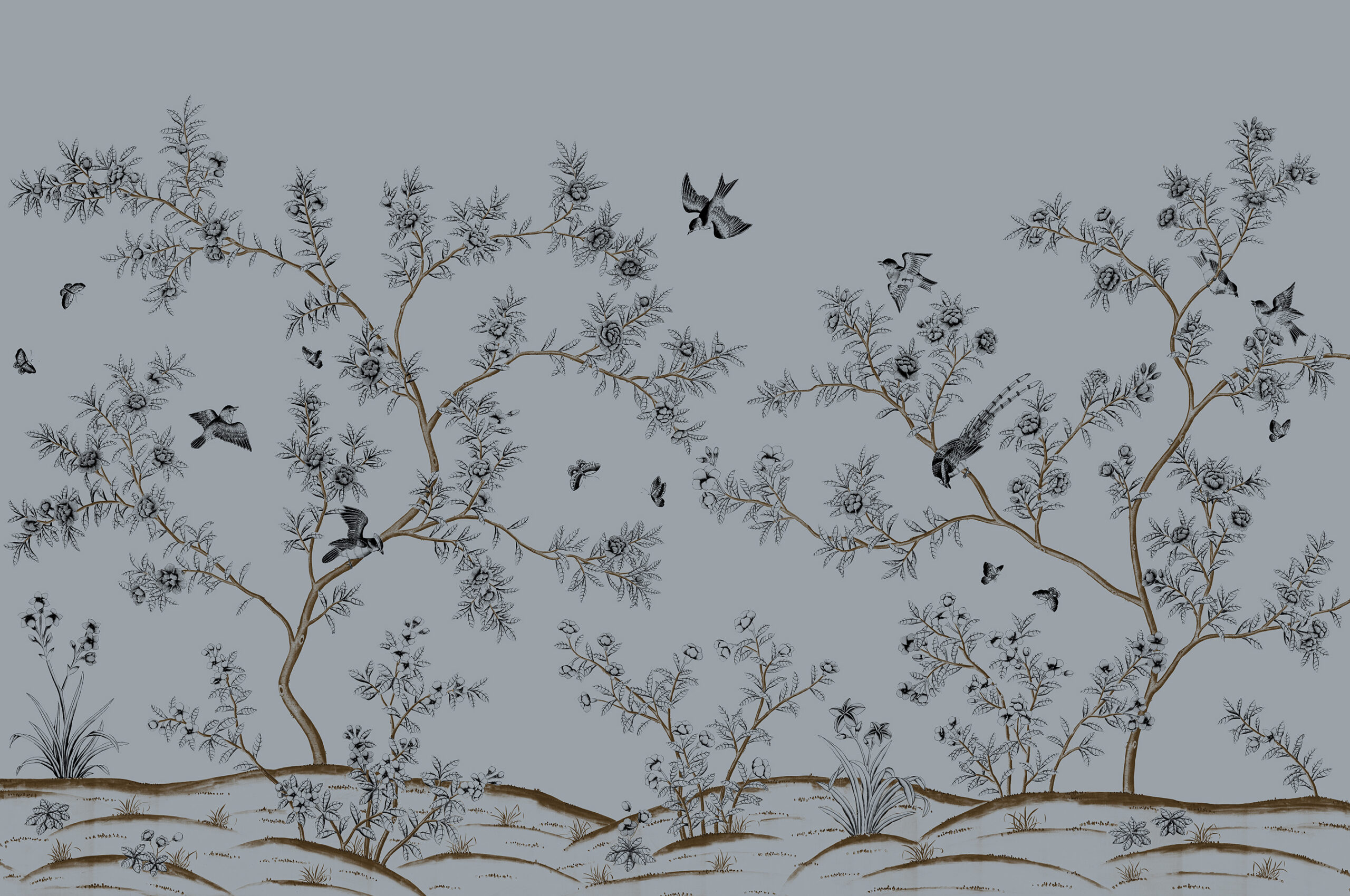 Tags: Chinoiseries, Digital Printing, Floral/Botanical, Gilded Metallic Silver, Mural, Silver, Traditional
