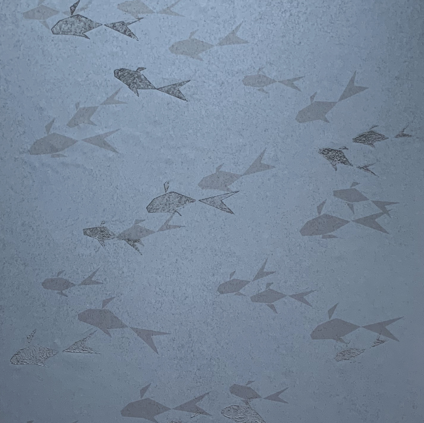 Design Oceanus illustrates free swimming fish on a textured pearlised hand gilded metallic surface. The fish move together in one direction their different shades emphasising the three dimensional quality of the design. This complex pattern and structure uniquely provides an overall tranquil calm scene that appears simple and contemporary. This wall covering will charm both modern and traditional settings.
