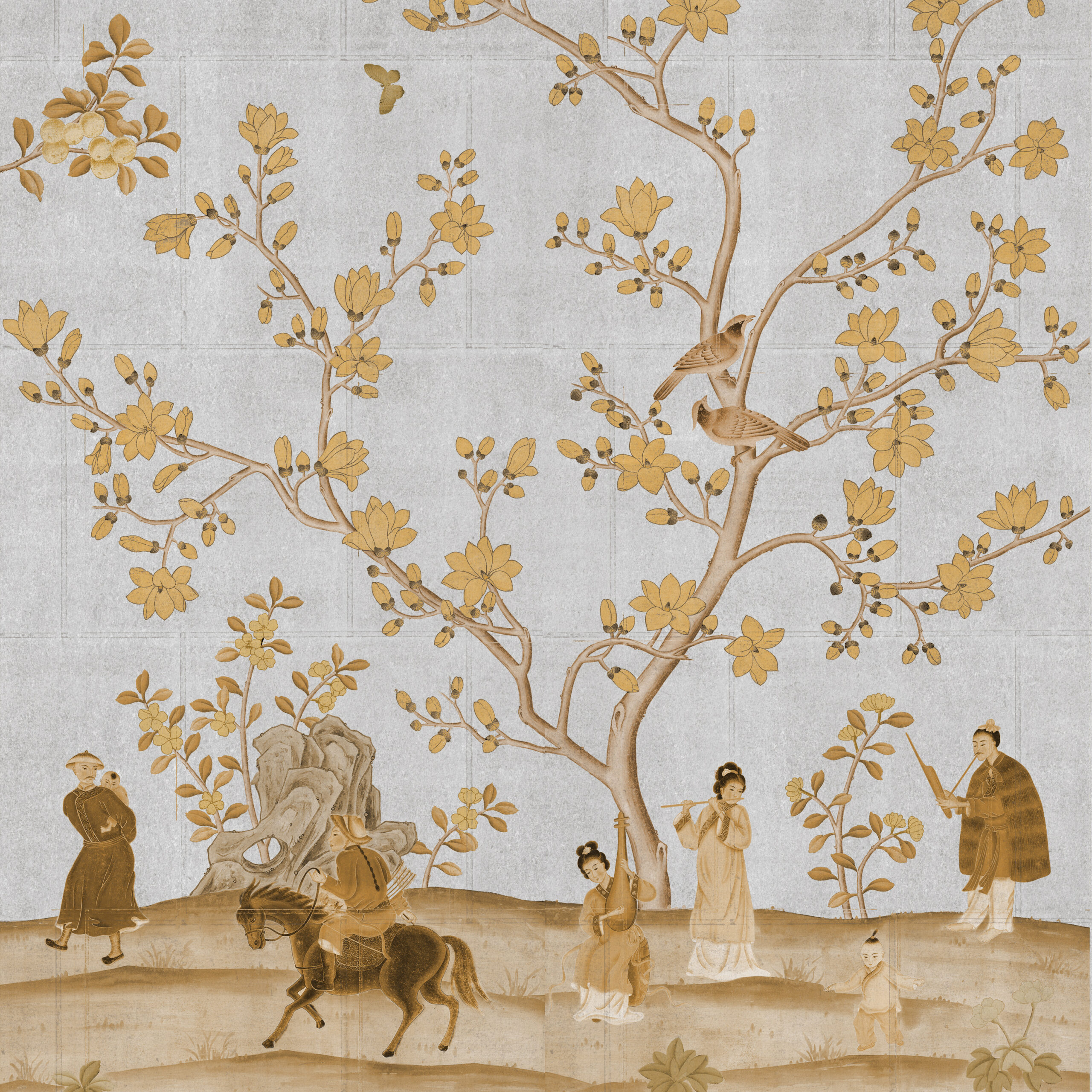Tags: Chinoiseries, Floral/Botanical, Hand Painted, Mural, Pieced and Glued Metallic, Silver, Traditional