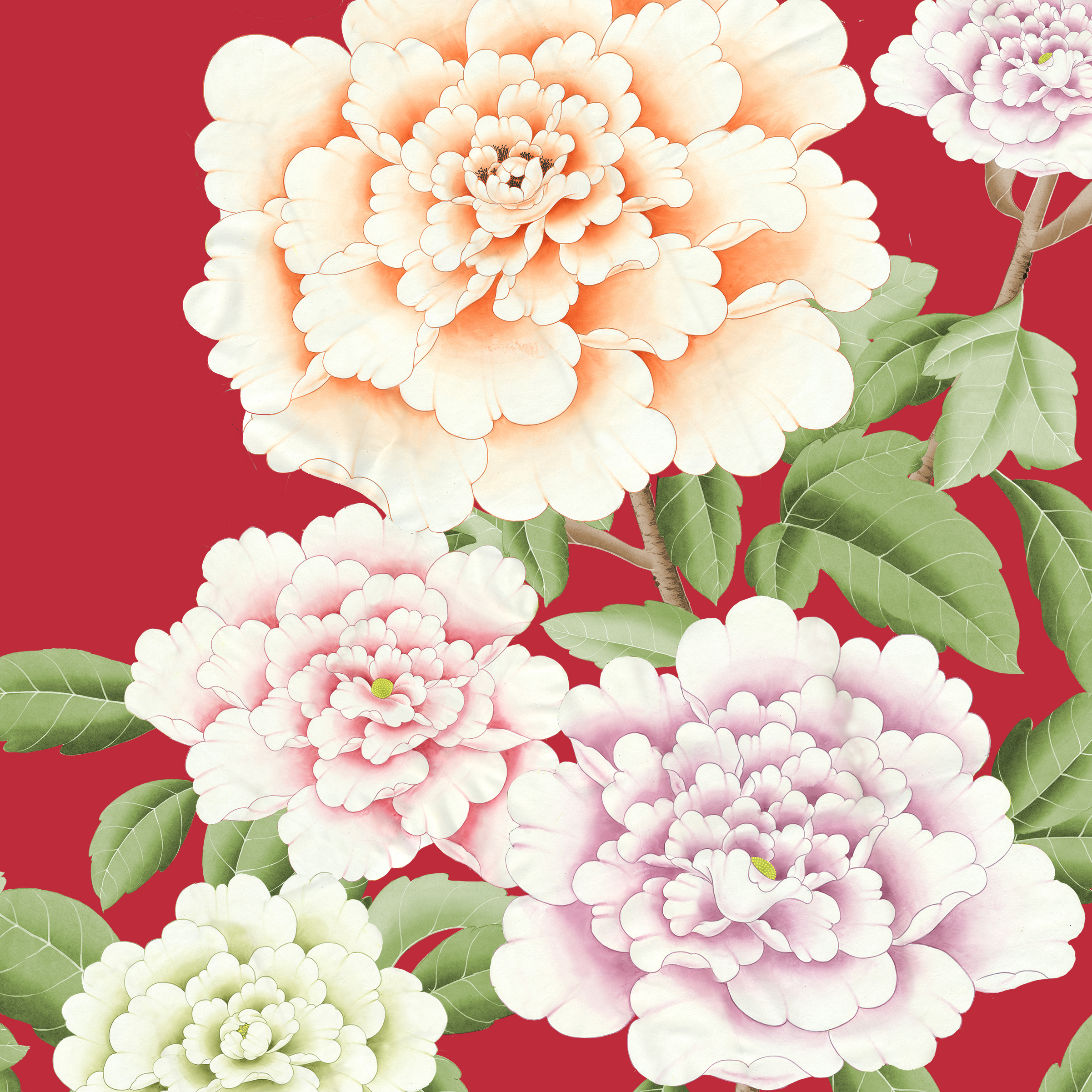 Our impressive peony wallpaper illustrates the fragile unassuming beauty of this unique flower. A stunning plant, with flowers of multiple colours, this scene will enrich any interior space. In Chinese culture the Peony represents prosperity, luxury, good fortune, and honour.