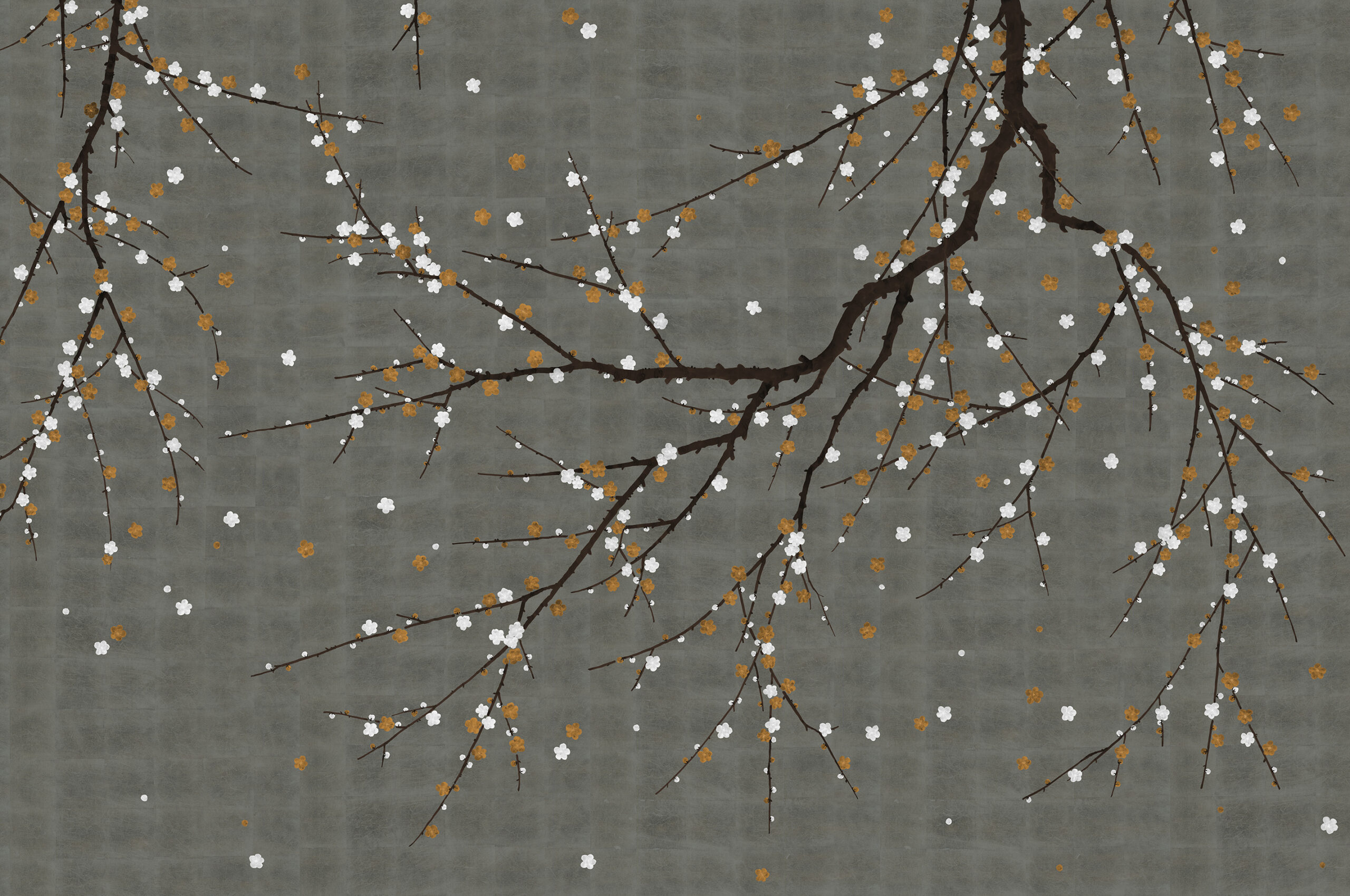 Prunus Mume, Chinese Plum or Japanese Plum is an East Asian tree species. The plum blossom is a long beloved subject in the traditional painting and poetry of East Asia. The design features exquisitely painted plum blossom on delicate trailing branches and carefully scattered around the scene. Perfect in both traditional and contemporary colours and settings.