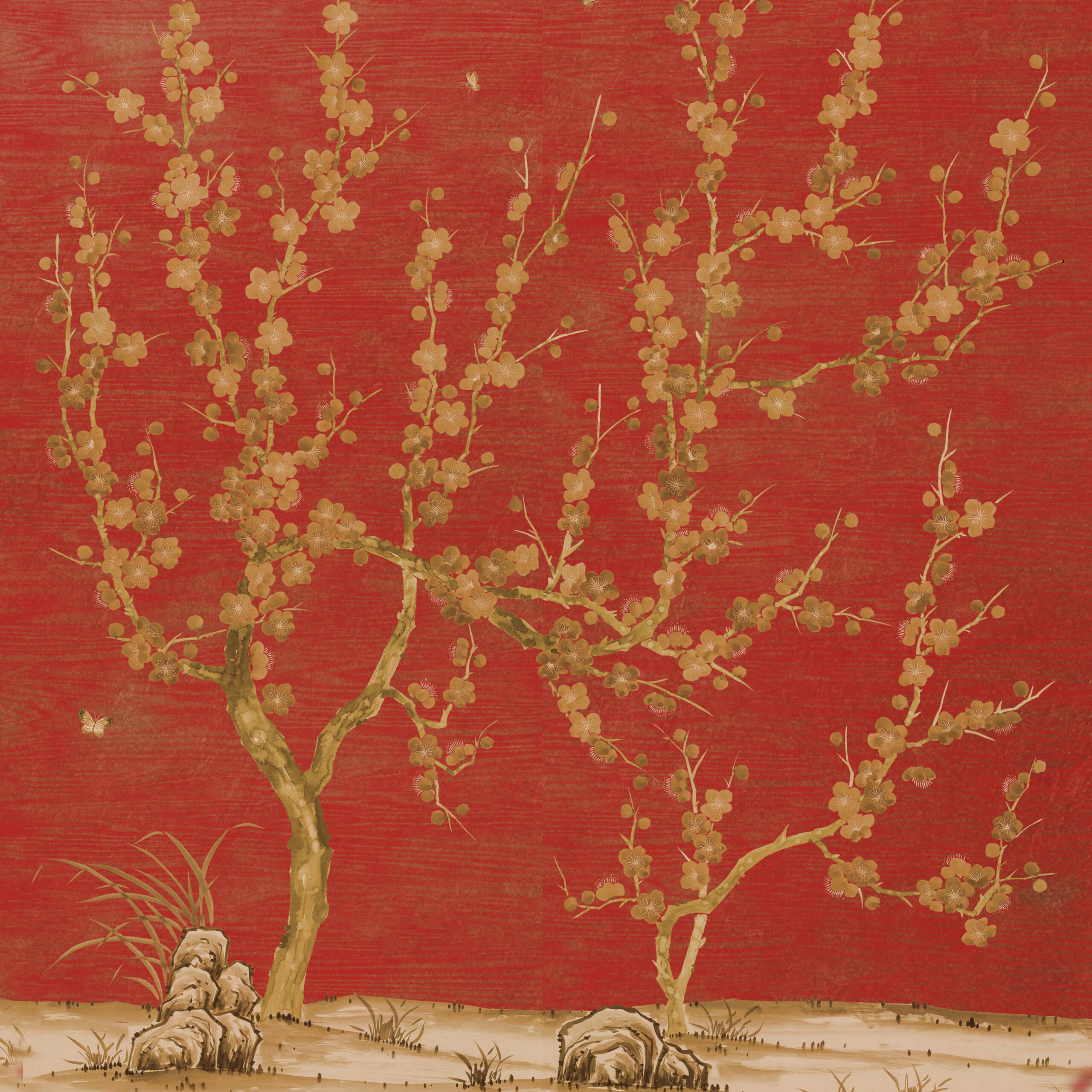 Tags: Chinoiseries, Floral/Botanical, Hand Painted, Metallic Silk, Modern, Mural, Red