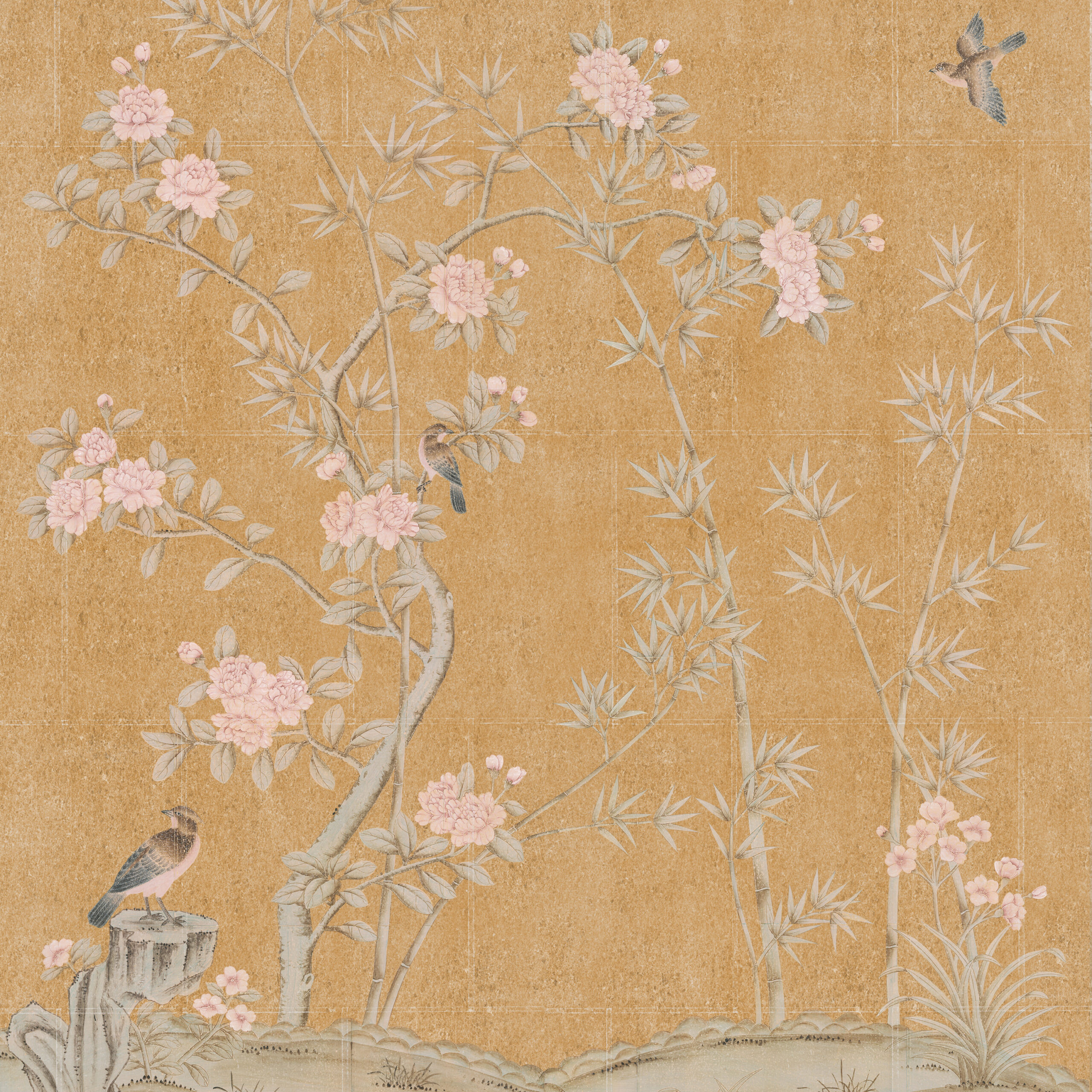 Tags: Chinoiseries, Floral/Botanical, Gold, Hand Painted, Mural, Pieced and Glued Metallic, Traditional